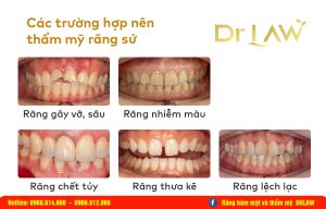Xu hướng làm đẹp ngày nay không thể thiếu được thẩm mỹ răng sứ. Một nụ cười mới không chỉ mang tới ngoại hình tươi tắn, rạng rỡ mà còn nuôi dưỡng và khơi dậy sự tự tin từ sâu bên trong của mỗi cá nhân. Vậy thẩm mỹ răng sứ là gì? Những trường hợp nào nên làm thẩm mỹ răng sứ? Cùng DrLaw tìm hiểu từ tổng quan đến chi tiết nhất về thẩm mỹ răng sứ ở nội dung bài viết dưới đây nhé!